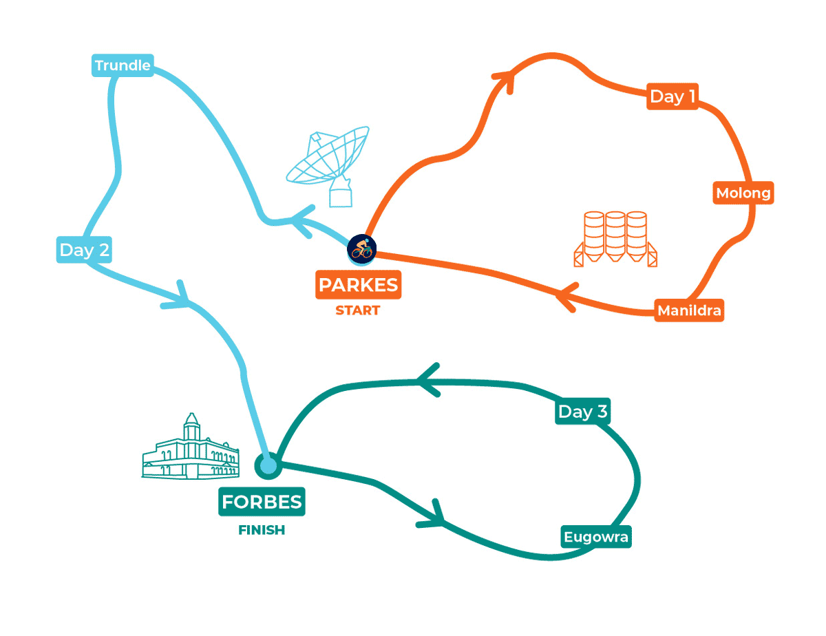 Setting off on Sunday 17th May, the Ride will cover over 380km through NSW’s far west regions. It will take cyclists on a journey through Royal Far West’s heartland – starting in Parkes, and travelling through Manildra, Molong, Trundle, and Eugowra, before finishing in Forbes.